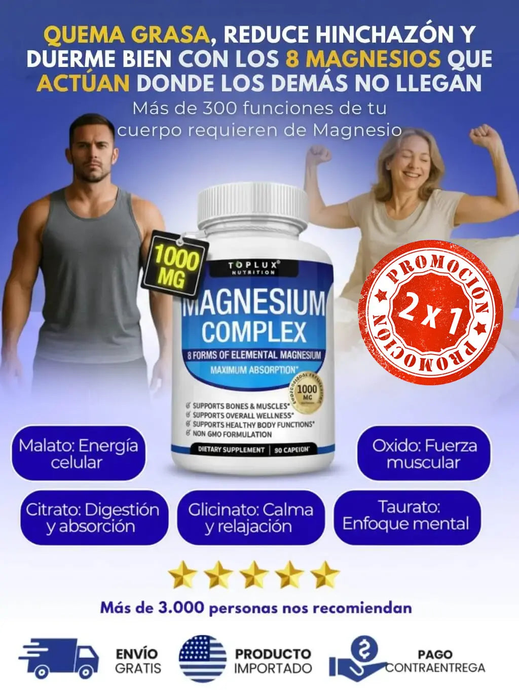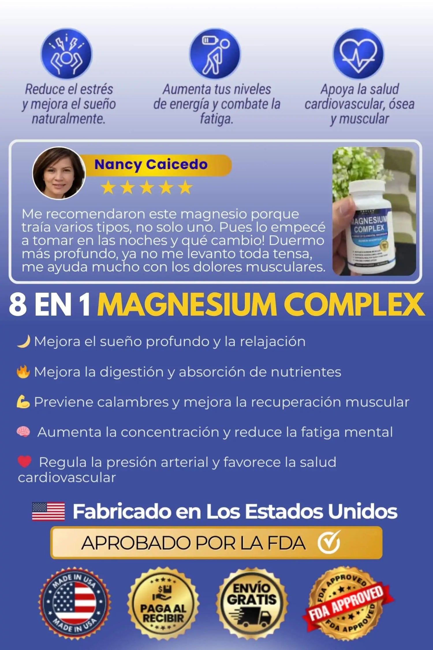 Sí, su fórmula completa apoya la función muscular, reduce calambres y combate el cansancio diario gracias a su combinación de 8 tipos de magnesio.